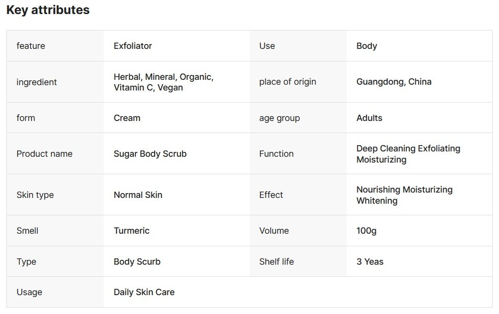 Be the first to review “Oem Turmeric Kojic Acid Body Scrub Strong Whitening Custom logo Sugar Body Scrub” Cancel reply