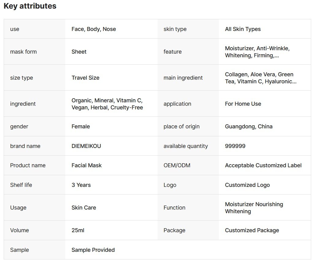 Private Label Collagen Facial Masks Korean Skincare Facial Masks
