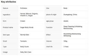 Be the first to review “Turmeric Kojic Acid Body Scrub Strong Whitening Sugar Body Scrub”
