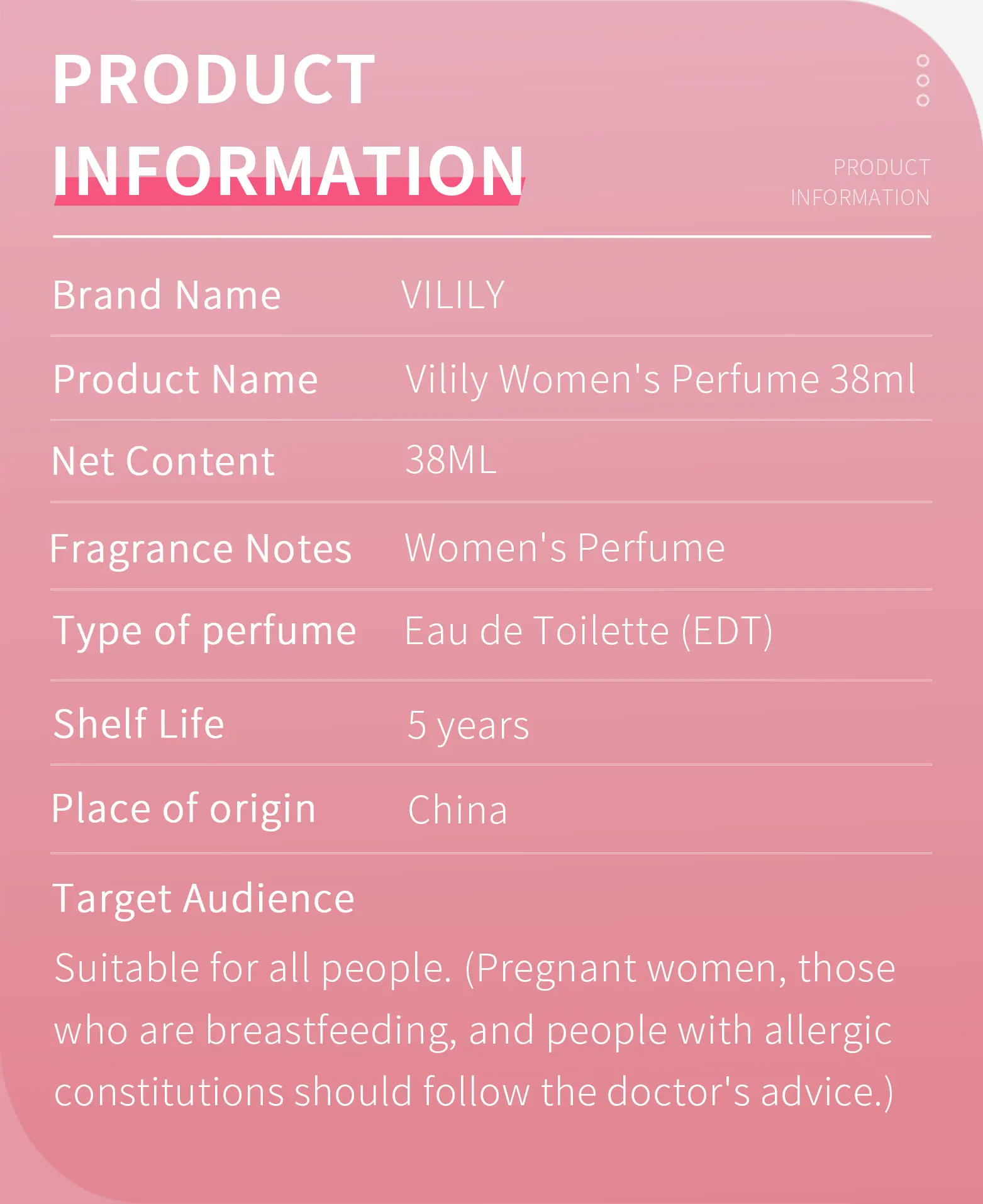 VILILY B002 Perfume 38ml Spray Fruity Floral for Lady Por Mayor Attractive Perfume for Women